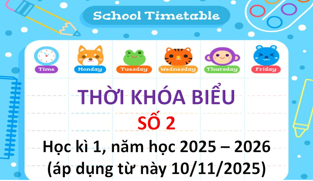 Thời Khóa Biểu Thời khóa biểu số 2, học kì 1, năm học 2025 – 2026 (áp dụng từ ngày 10/11/2025) Được đăng trên 10 Tháng Mười Một, 202517 Tháng Mười Một, 2025 bởi Admin 10 Th11 TKB-so-2-APDUNGTU-10-11-2025Tải xuống LỊCH CÔNG TÁC THÁNG 11 NĂM 2025 NGÀY HỘI PICKLEBALL & LỄ TRI ÂN 20-11 TRƯỜNG THCS NGUYỄN THIỆN THUẬT: NIỀM VUI LAN TOẢ VÀ NGHĨA TÌNH ĐONG ĐẦY